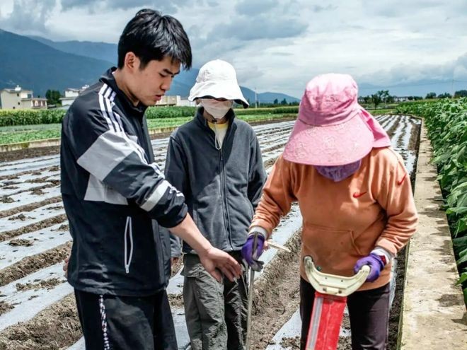 2021年,云南農(nóng)墾集團(tuán)在古生村建農(nóng)業(yè)綠色有機(jī)種植基地,何利成應(yīng)聘成為古生片區(qū)管理員,又一次轉(zhuǎn)變身份?!斑^(guò)去種地靠大水大肥,化肥沖到洱海里就是污染?,F(xiàn)在用綠色肥料精準(zhǔn)施肥,污染少還高產(chǎn),畝產(chǎn)量能到800多公斤?!?/p>