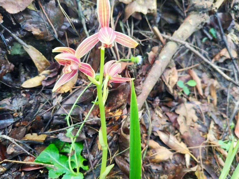近日,云南省文山壯族苗族自治州麻栗坡老山省級(jí)自然保護(hù)區(qū)管護(hù)局工作人員在猛硐片區(qū)開展野外巡護(hù)與常態(tài)化生物多樣性監(jiān)測(cè)過程中,發(fā)現(xiàn)5株矮小型蘭花,其中2株正處于開花期。經(jīng)中國(guó)科學(xué)院植物研究所專家鑒定,確認(rèn)為蘭科蘭屬珍稀物種——珍珠矮。