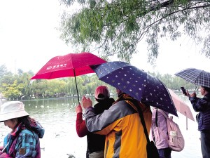 受冷空氣影響,昆明氣溫驟降,但陰雨天氣卻未能阻擋市民觀鷗熱情。11月3日,翠湖公園、大觀公園已能看到紅嘴鷗的身影,不少市民游客手持雨傘觀鷗、喂鷗,迎接如期而來的白色精靈。