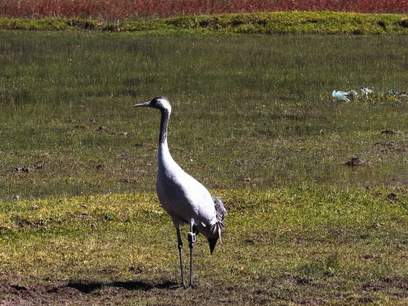 近日,管護局巡護員在巡護時發(fā)現(xiàn)了一只特殊的灰鶴,這是今年監(jiān)測到的首只攜帶追蹤器抵達的越冬灰鶴。追蹤器數(shù)據(jù)顯示,這只灰鶴于今年2月12日被安裝衛(wèi)星定位追蹤器,3月21日隨灰鶴群開始北徙,途經(jīng)四川、西藏,再從柴達木盆地翻越祁連山抵達新疆等地,最終在俄羅斯阿爾泰邊疆度過了夏天。