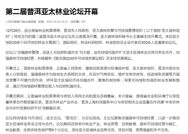 第二屆普洱亞太林業(yè)論壇開(kāi)幕