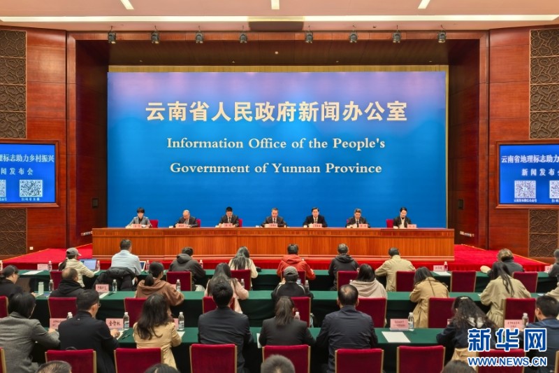 云南省地理標(biāo)志助力鄉(xiāng)村振興新聞發(fā)布會現(xiàn)場(10月28日攝)。新華網(wǎng) 趙普凡 攝