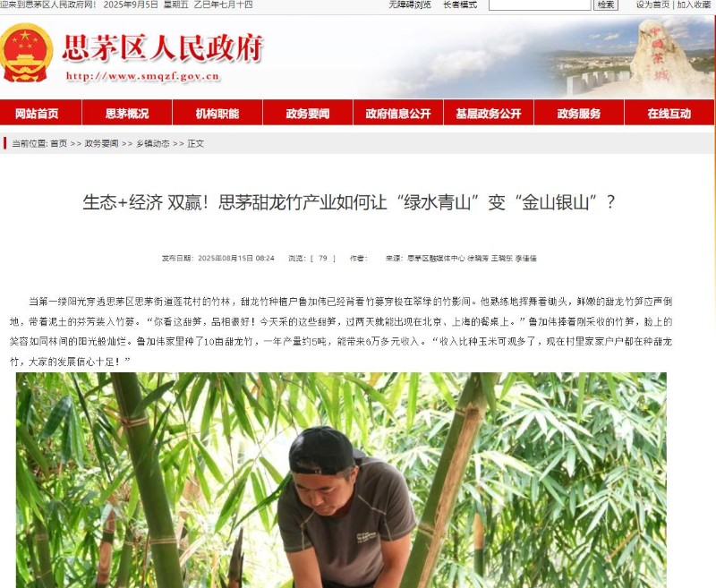 1731、生態(tài) 經(jīng)濟 雙贏!思茅甜龍竹產業(yè)如何讓“綠水青山”變“金山銀山”?