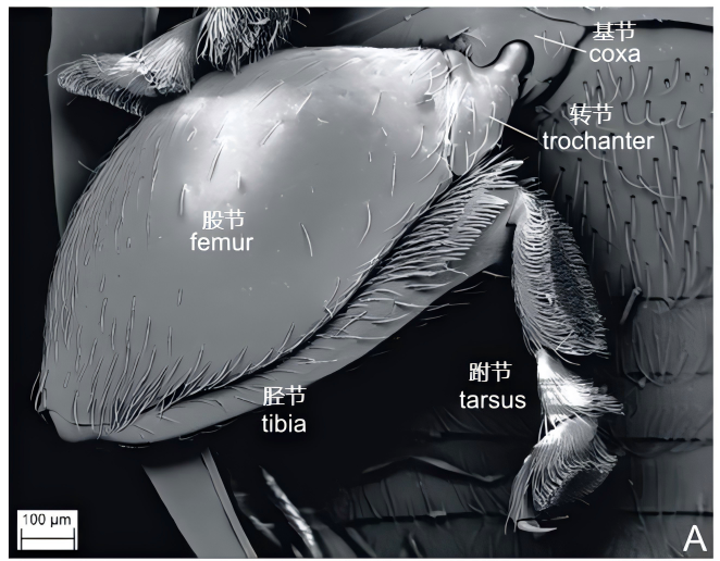 跳甲后足解剖結(jié)構(gòu)示意圖(圖片修改自論文DOI:10.1007/s42235-025-00726-4)