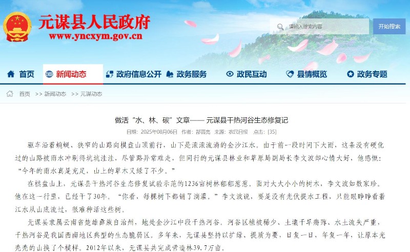 1724、做活“水、林、碳”文章 【YNTV-1 云南新聞聯(lián)播8月29日】 http://www.y