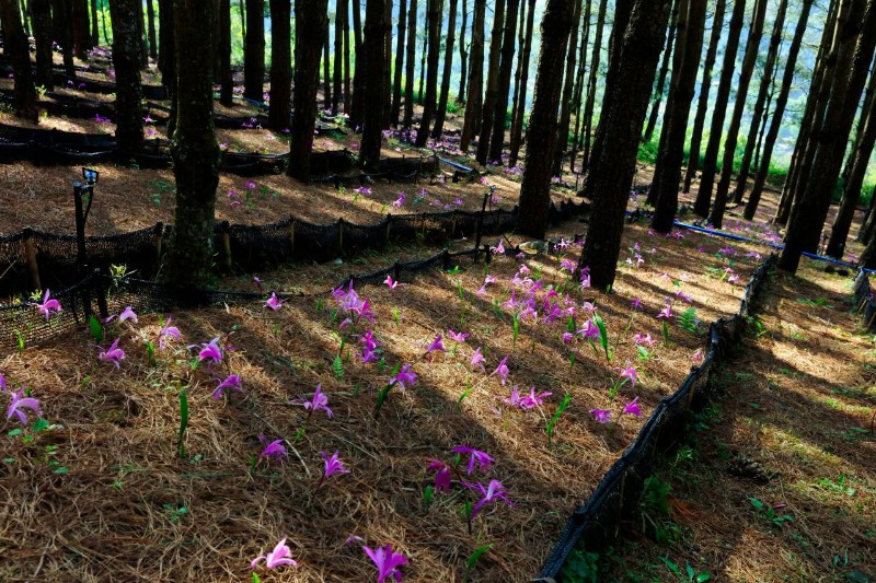 《松樹林下花朵盛開的獨(dú)蒜蘭》。溫樹全 攝