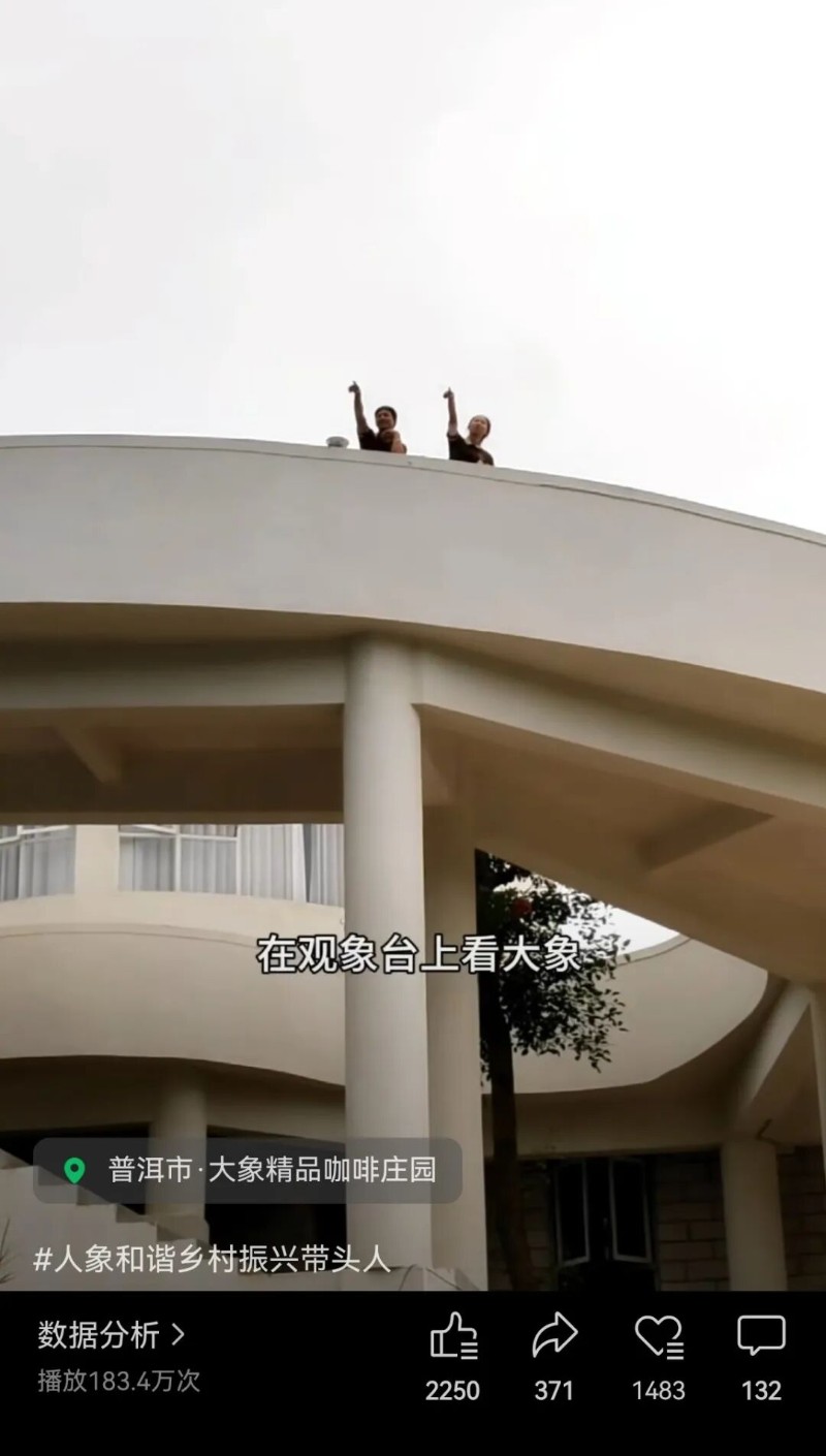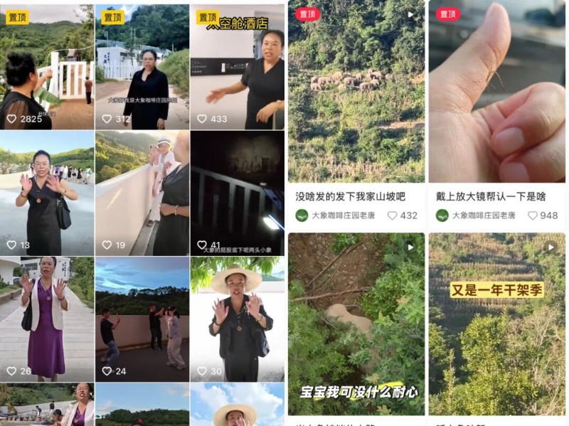 數(shù)據(jù)顯示,在8天的假期里,21個(gè)賬號(hào)累計(jì)發(fā)布視頻336條,平均每個(gè)賬號(hào)每天發(fā)布2條內(nèi)容。視頻涵蓋“莊園游玩攻略、假日活動(dòng)花絮、野生亞洲象觀測(cè)實(shí)錄、咖啡制作教程”等多個(gè)維度。一條記錄“在觀景臺(tái)看大象群”的視頻,在微信視頻號(hào)平臺(tái)單條播放量突破100萬,引發(fā)了網(wǎng)友的關(guān)注和熱議。