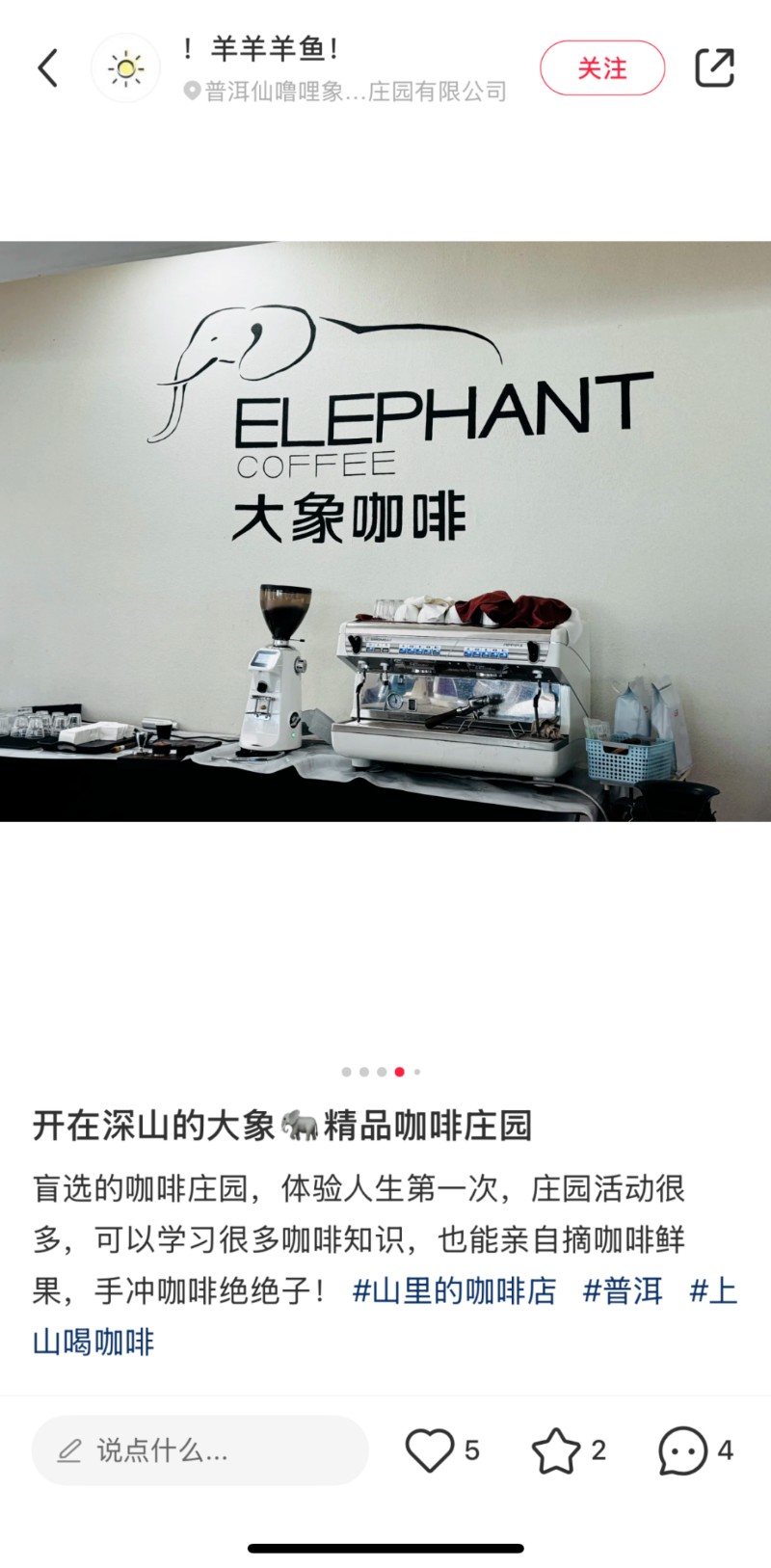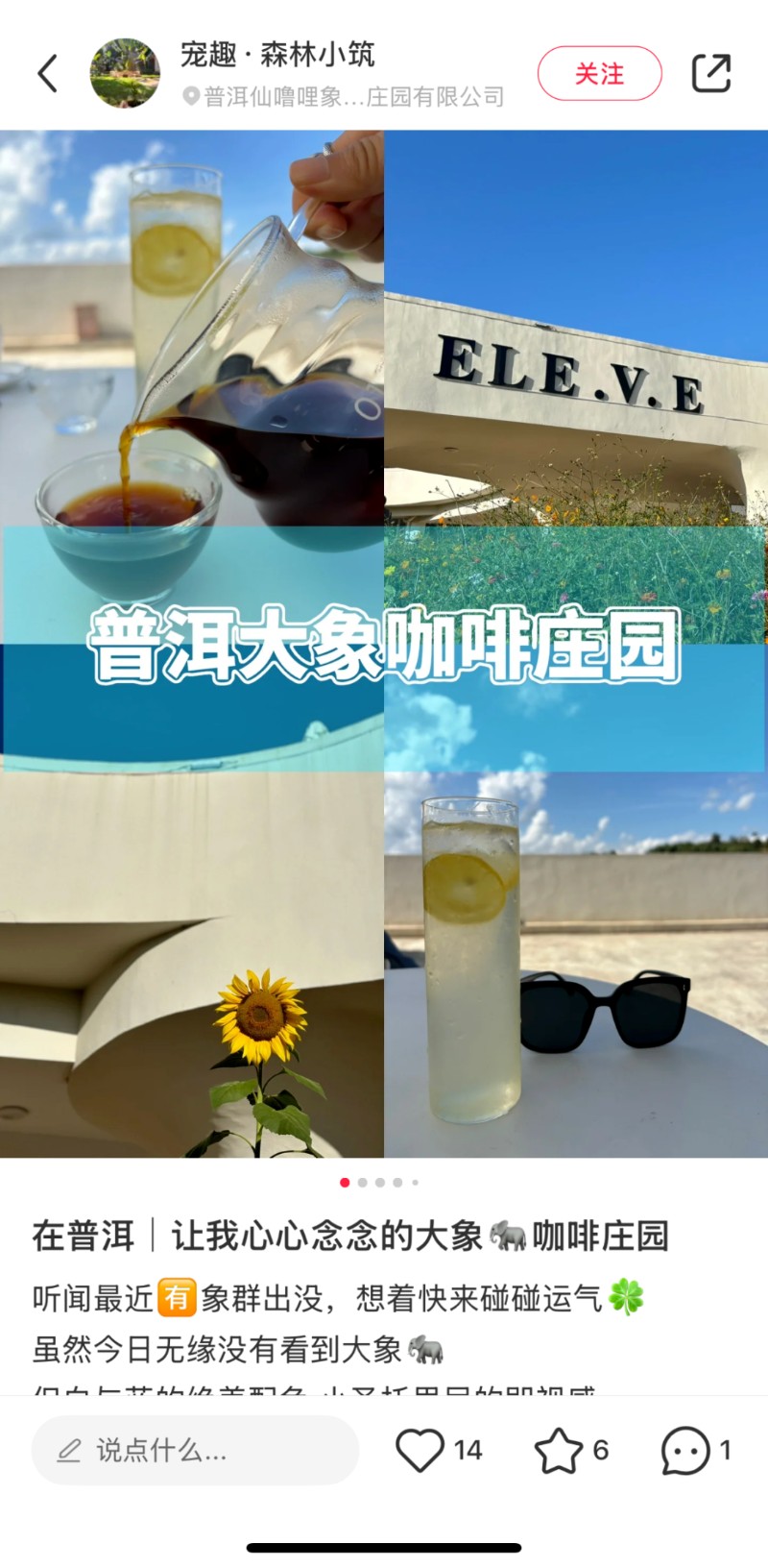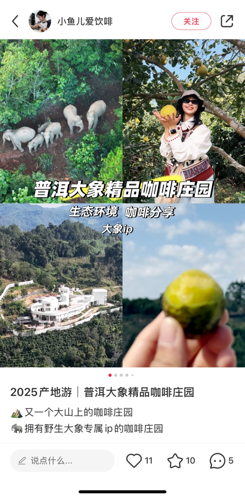 這一模式不僅降低了宣傳成本,更讓每位普洱咖啡師成為莊園的“活名片”。他們通過分享咖啡拉花的技藝細(xì)節(jié)、與游客互動(dòng)的溫暖時(shí)刻,以及“人象共處”的獨(dú)特場(chǎng)景(如游客隔著安全圍欄觀察野象覓食),將莊園形象從“景點(diǎn)”轉(zhuǎn)化為“有溫度的故事載體”。立體鮮活的內(nèi)容輸出,既拉近了與網(wǎng)友的情感距離,也為后續(xù)流量變現(xiàn)奠定基礎(chǔ)。