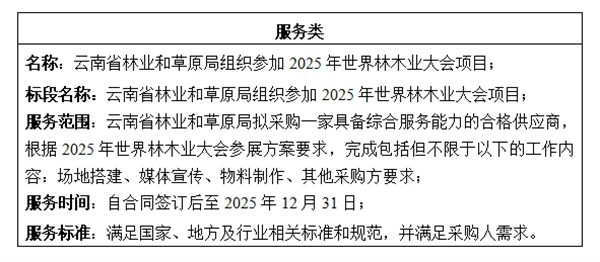 二、項(xiàng)目名稱(chēng):云南省林業(yè)和草原局組織參加2025年世界林木業(yè)大會(huì)項(xiàng)目