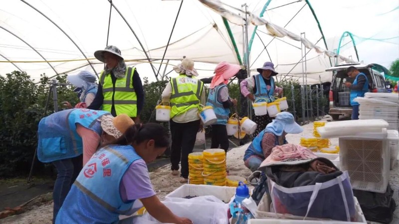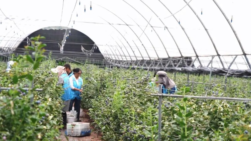 清晨的陽光透過半透明大棚,數(shù)十名工人已經(jīng)在藍莓棚里忙碌開來。他們手法嫻熟,輕巧地將熟果摘下并進行初步分揀,按照果實大小分別放入不同顏色的筐中。正是“幸福里”模式,讓張春蓮和許多像她一樣的產(chǎn)業(yè)工人實現(xiàn)了在家門口就業(yè)。
