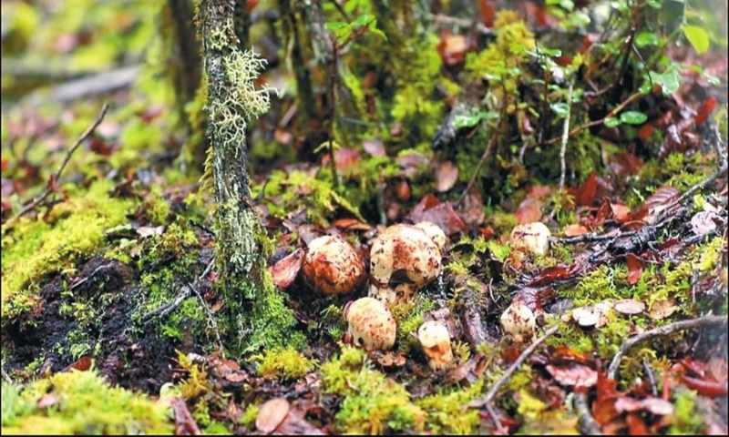 林下松茸破土而出。 迪慶州委宣傳部 供圖