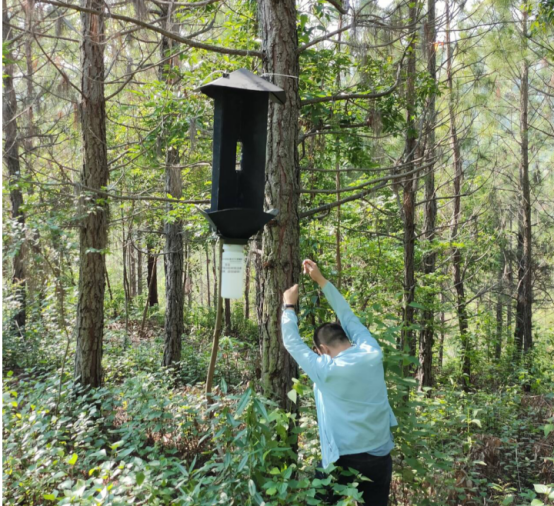 為了貫徹落實《農(nóng)業(yè)農(nóng)村部,自然資源部,生態(tài)環(huán)境部,海關總署,國家林業(yè)局關于印發(fā)進一步加強外來物種入侵防控工作方案的通知》(農(nóng)科教發(fā)[2021]01號和落實《全國森林、草原、濕地生態(tài)系統(tǒng)外來入侵物種國家級監(jiān)測站建設方案》的通知要求,在重點監(jiān)測小班布局監(jiān)測站安裝松墨(褐)天牛專用誘捕器。7月29日上午蒙自市林業(yè)和草原有害生物防治檢疫中心工作人員在小東山基地安裝松墨(褐)天牛專用誘捕器5套。