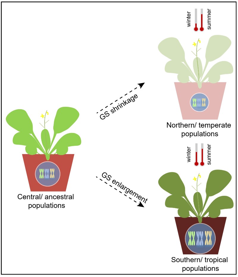 基因組大小(即單倍體細(xì)胞內(nèi)核DNA總量,亦稱“C值”)在生物界差異懸殊,其成因與演化意義是長期困擾學(xué)界的“C值悖論”之謎,并被《科學(xué)》列為125個前沿科學(xué)難題之一。該悖論的核心在于:基因組大小與生物復(fù)雜性無關(guān),而傳統(tǒng)的重復(fù)序列積累的觀點(diǎn),雖能解釋變異的物質(zhì)基礎(chǔ),卻無法闡明其背后的演化動因與生態(tài)邏輯。在種間層面,既有觀點(diǎn)認(rèn)為存在針對大基因組的負(fù)選擇壓力,限制其無限擴(kuò)張;亦有假說提出“大則不同”(“bigger is different”),暗示基因組擴(kuò)大本身可能具有適應(yīng)性意義。然而,這些爭論尚缺乏種內(nèi)水平的實(shí)證支撐,基因組大小變異的驅(qū)動因素與生態(tài)后果仍不明確。