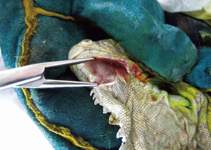 用消毒藥棉纏繞鑷子上,清除膿汁,用生理鹽水沖洗口腔。用西瓜霜噴灑患處,每日1次。在飼料中拌入抗生素藥物,連續(xù)投喂3~5日。