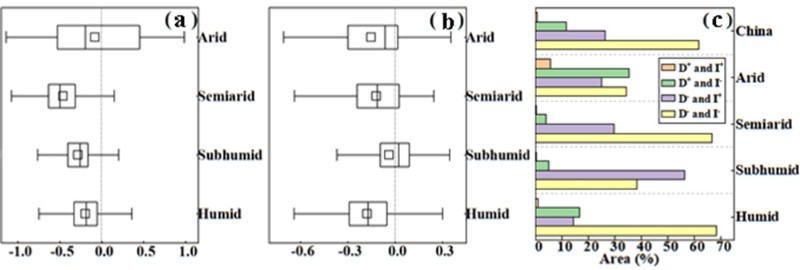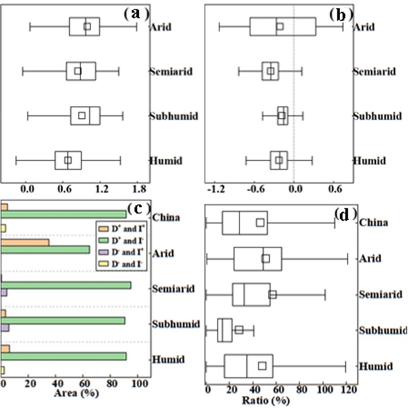 圖2大氣飽和水汽壓差對(duì)植被生產(chǎn)力影響的直接作用、間接作用及其交互作用