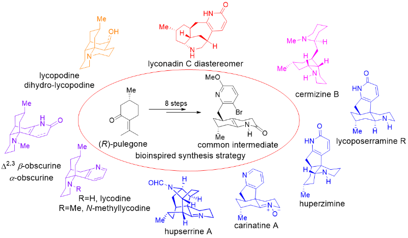 石松生物堿(Lycopodium alkaloids)是存在于石松科植物中的特征性成分,具有結(jié)構(gòu)多樣性和復(fù)雜性的特點(diǎn)。這類生物堿是藥物發(fā)現(xiàn)的重要資源,其中石杉?jí)A甲(Huperzine A)作為石松生物堿的典型代表分子,具有選擇性乙酰膽堿酯酶抑制活性,在臨床上用于治療中輕度阿爾茨海默病(Alzheimer's disease)。鑒于我國石松類植物資源豐富,為持續(xù)發(fā)掘石松生物堿新結(jié)構(gòu)、發(fā)現(xiàn)新的藥物先導(dǎo)分子,中國科學(xué)院昆明植物研究所植物化學(xué)與天然藥物全國重點(diǎn)實(shí)驗(yàn)室趙勤實(shí)研究團(tuán)隊(duì)多年來致力于石松生物堿的研究,已成功發(fā)現(xiàn)多種結(jié)構(gòu)新穎、活性優(yōu)良的化合物,并在CCS Chemistry、Organic Letters、Chemical Communications、Organic Chemistry Frontiers以及Bioorganic Chemistry等國際知名學(xué)術(shù)期刊上發(fā)表了系列研究論文。然而,石松生物堿在植物資源中含量極低,限制了石松生物堿活性研究和進(jìn)一步藥物發(fā)現(xiàn),如何通過化學(xué)全合成方法打破石松生物堿資源匱乏困境成為亟待解決的科學(xué)問題。趙勤實(shí)研究團(tuán)隊(duì)在此領(lǐng)域取得了顯著進(jìn)展,他們先后對(duì)(±)-Cermizine B(J. Org. Chem. 2017, 82, 11110)、Huperserratine A和B(Org. Chem. Front, 2022, 9 , 3664),以及Phlegmine A(CCS Chem. 2024, 6, 2529)開展了全合成研究,為石松生物堿的資源開發(fā)利用和藥物發(fā)現(xiàn)提供了基礎(chǔ)。