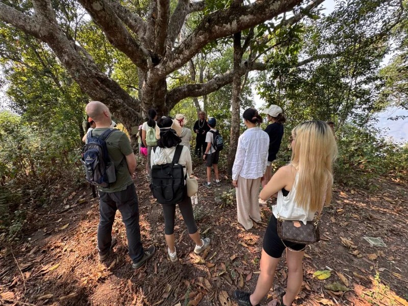 西定村周邊自然風(fēng)光優(yōu)美,承載著悠久的布朗族歷史文化。依托這兩大核心優(yōu)勢(shì),“西定茶咖書(shū)香閣”順勢(shì)打造“茶咖探秘之旅”,將古茶林參觀(guān)與制茶技藝體驗(yàn)深度融入行程。近期,借助西雙版納影視劇組取景的熱度,這里也成為熱門(mén)拍攝地,不少劇組慕名而來(lái),以村寨為背景記錄布朗族文化片段。其中,在視頻平臺(tái)熱播的《南滋北味》便是在此取景,讓更多人通過(guò)鏡頭認(rèn)識(shí)了以茶為生的布朗族人,了解了他們的生活日常。