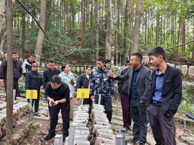 隨后,參訓(xùn)人員前往旴江生態(tài)公益林場(chǎng)林菌實(shí)訓(xùn)基地進(jìn)行現(xiàn)場(chǎng)學(xué)習(xí),授課人員圍繞“林下菌菇種植技術(shù)及病蟲害防治”、“林下仿野生高效栽培技術(shù)”等內(nèi)容,從菌棒擺放、林下遮陰管理、溫濕度控制等進(jìn)行專題授課,并就學(xué)員提出的菌種繁育、貯藏保鮮,初、精深加工等問題逐一解答。