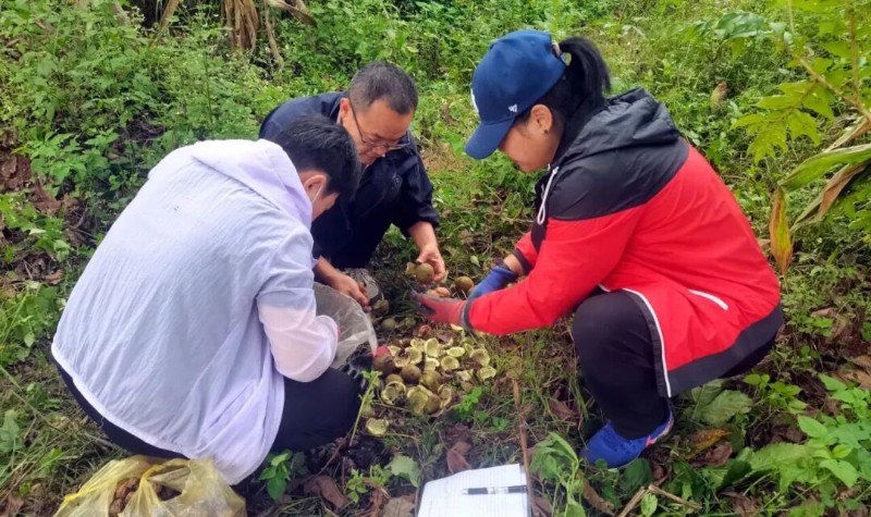 為充分掌握東川區(qū)2021年以來實施的4500畝核桃高產高效示范基地建設成效,區(qū)林草局近期組織了專業(yè)技術人員進行初步調查,隨機選取2個鎮(zhèn)3個村的示范基地內3個樣地,認真記錄核桃的品種、生長情況、撫育管理情況,分品種檢測果實大小、風味、品質等。此次調查針對分布在阿旺鎮(zhèn)、烏龍鎮(zhèn)、紅土地鎮(zhèn)、銅都街道、碧谷街道、湯丹鎮(zhèn)、拖布卡鎮(zhèn)實施核桃品種改良后,達到三年以上并初掛果的地塊,品種為“漾濞泡核桃”昭通“麻1”“麻2”“慶豐3號”,2023年后改良的東川本地“烏仁”特色品種及其他品種待掛果后跟蹤調查。
