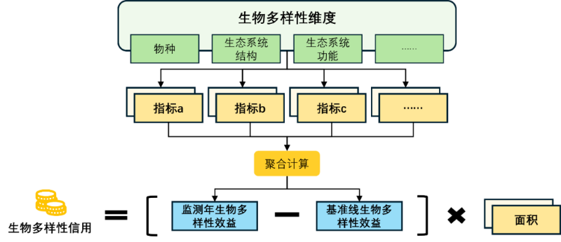 開發(fā)生物多樣性信用的核心,在于將保護(hù)與恢復(fù)行動產(chǎn)生的生物多樣性凈增益開發(fā)成“信用”商品,并在市場上進(jìn)行流通和出售。因此,生物多樣性信用的核算基于生物多樣性凈增益的產(chǎn)生過程和結(jié)果,核算過程中,必須確保其凈增益是真實(shí)有效的。對應(yīng)于碳信用核算由減排增匯行動帶來的碳固定量,其本質(zhì)是相似的。