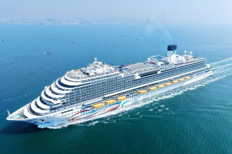 △2025年4月10日,首艘國產(chǎn)大型郵輪“愛達·魔都”號圓滿完成青島首航。