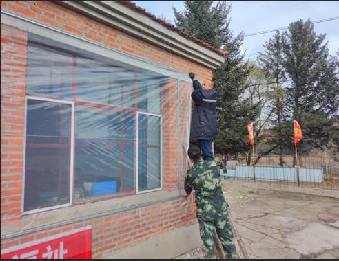 宏偉林場辦公用房建成時間較長,窗戶密封性能減弱,寒風常從縫隙灌入,影響職工辦公舒適度。趙東輝在日常走訪中發(fā)現(xiàn)這一問題后,立即協(xié)調采購了加厚透明塑料布、密封膠帶、固定壓條等保暖材料,決定帶領職工自力更生解決取暖難題?!奥毠冊谝痪€護林護草已經(jīng)很辛苦,不能讓大家在辦公室里挨凍。”他邊說邊將裁剪好的塑料布對準窗框,用壓條小心翼翼地固定頂端,再由上至下慢慢撫平,確保沒有褶皺和氣泡。