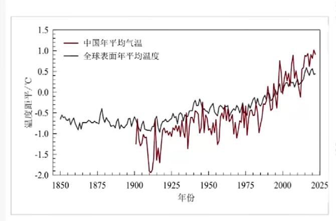 中國年平均氣溫與全球年平均氣溫增長統(tǒng)計圖。