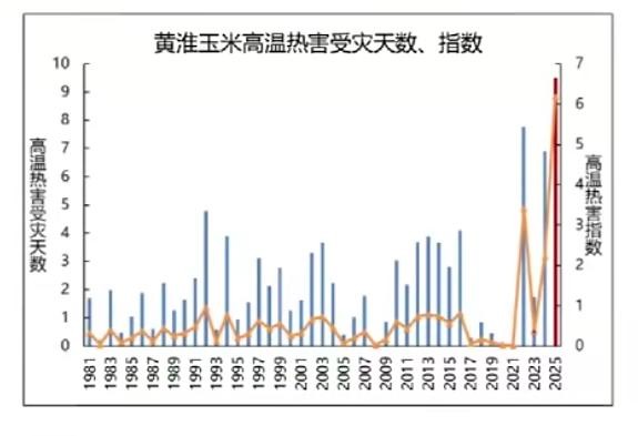 2025年,黃淮海玉米高溫?zé)岷κ転?zāi)天數(shù)、指數(shù)增長顯著。