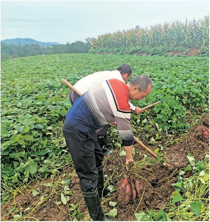 洋縣黃安鎮(zhèn)程家河村村民在有機紅薯基地挖紅薯(資料照片)。