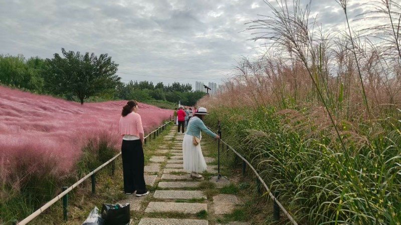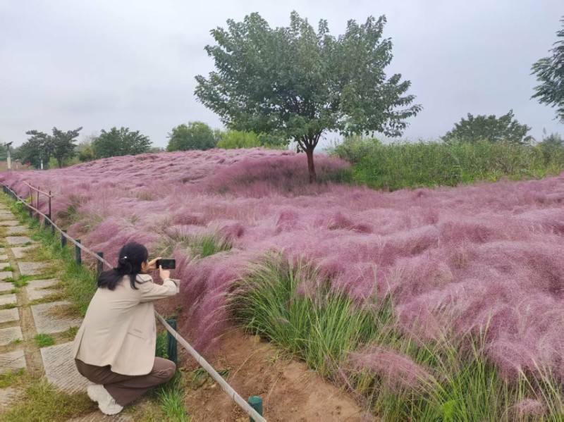 走進(jìn)公園,連片粉紫色花穗隨風(fēng)搖曳,花浪層層起伏,宛如鋪展于大地的“粉色夢(mèng)境”,無(wú)需刻意構(gòu)圖,隨手一拍便是氛圍感十足的秋日大片。