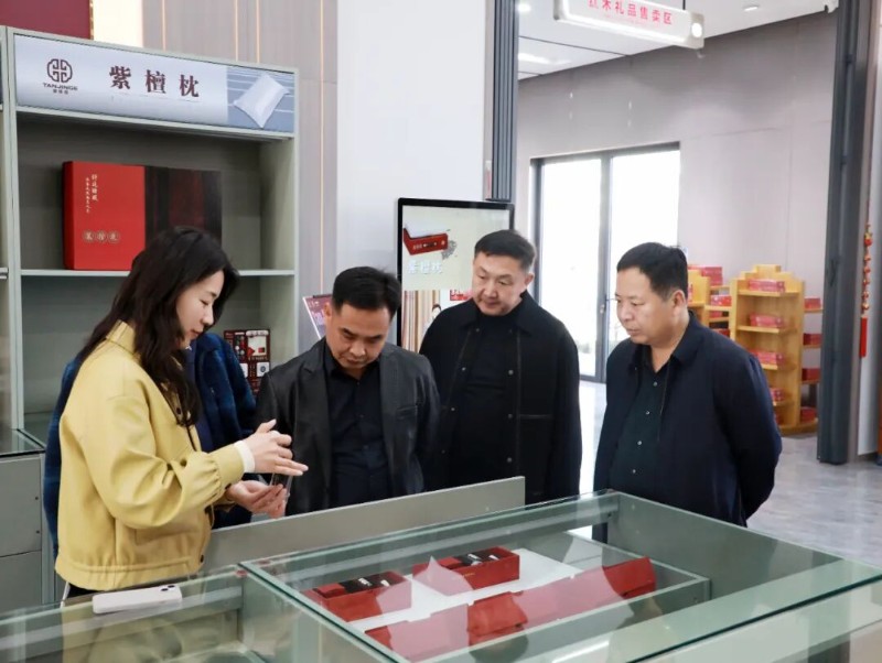 3月20日,廊坊師范學(xué)院書記趙京濤、副書記梁新春、副院長崔龍范一行5人深入?yún)⒂^了檀錦閣展示的紅木禮品與家具等。從細(xì)膩雕刻的禮品到大氣磅礴的家具,這些作品不僅采用了優(yōu)質(zhì)的紅木材料,還融入了傳統(tǒng)的榫卯結(jié)構(gòu),展現(xiàn)了非遺技藝的獨(dú)特魅力。